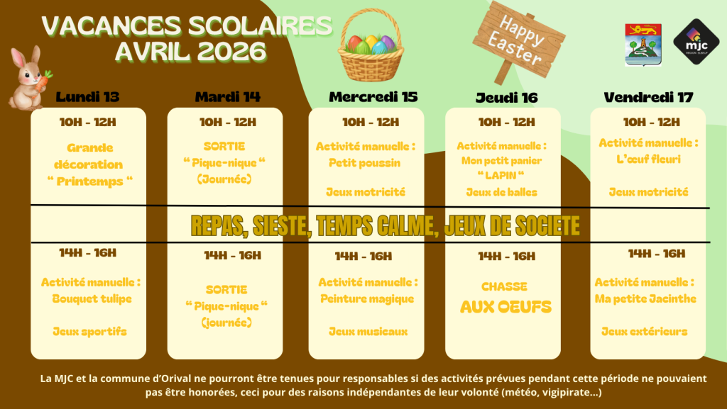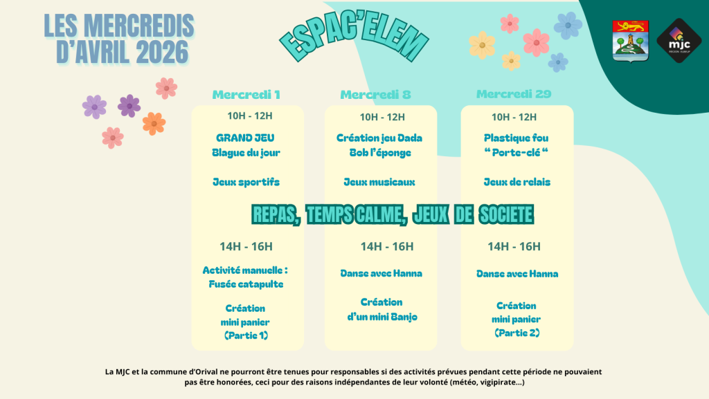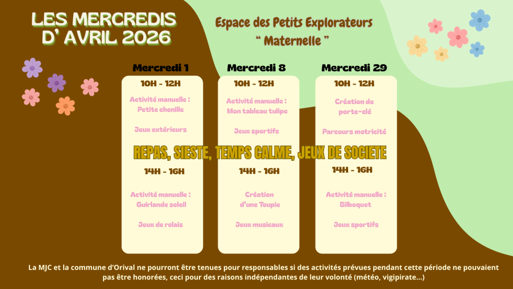 Planning des activités d'avril 2026 (mercredis) maternelles